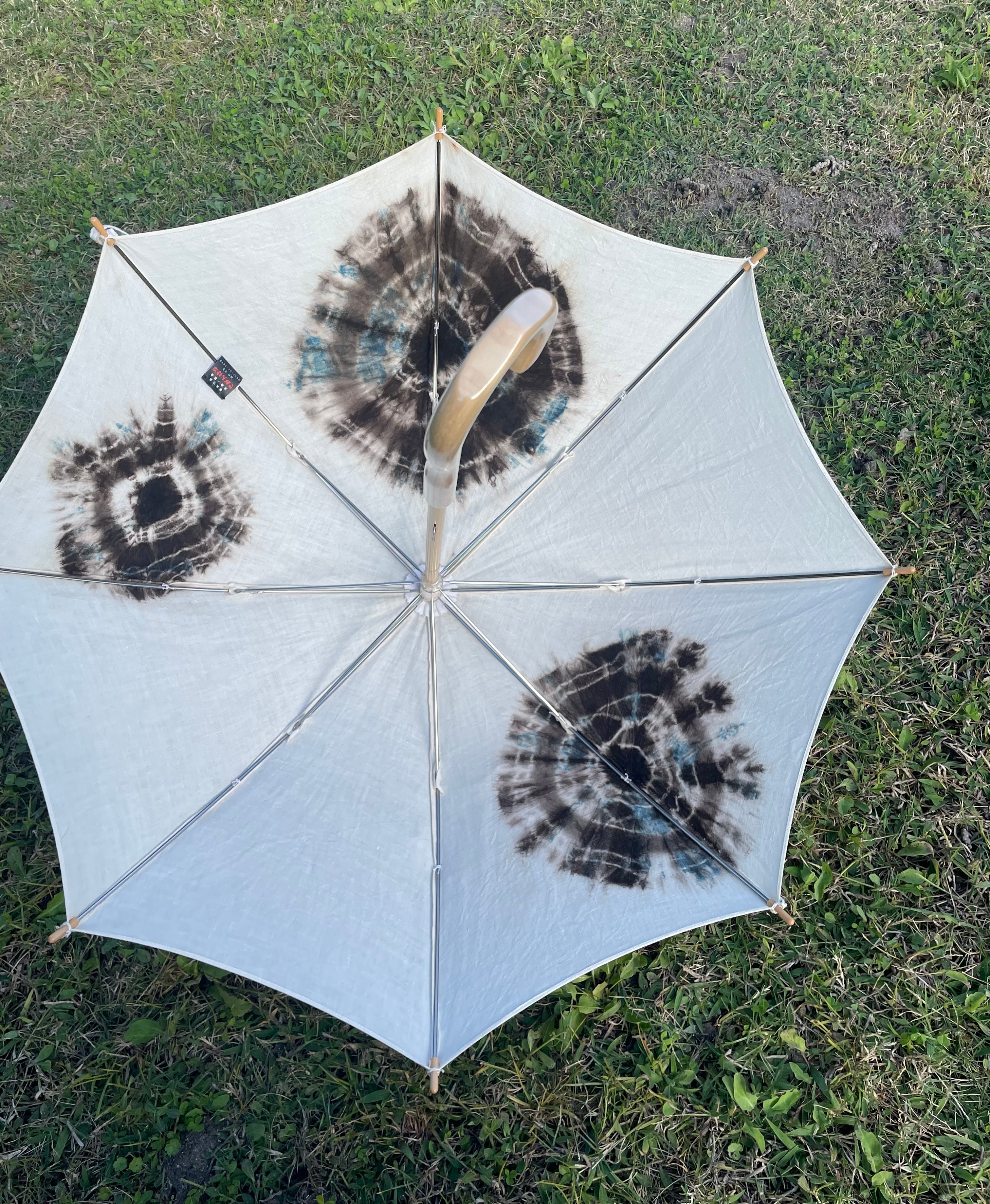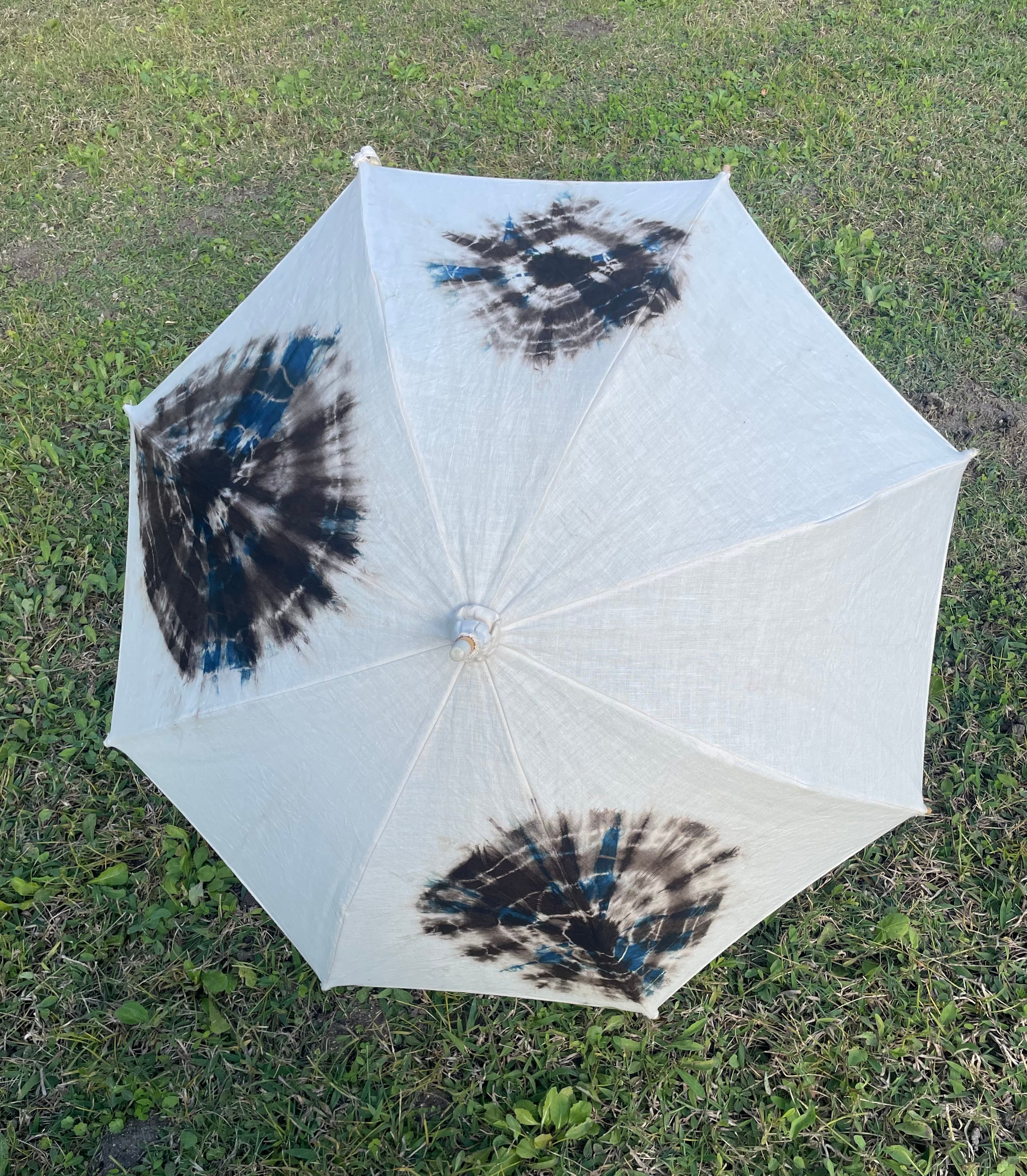当店の泥藍染は、職人が一つ一つ手作業で染め上げているため、どの傘も異なる表情を持つ、唯一無二のアイテムです。風に揺れる姿は、どこにいても目を引くことでしょう。