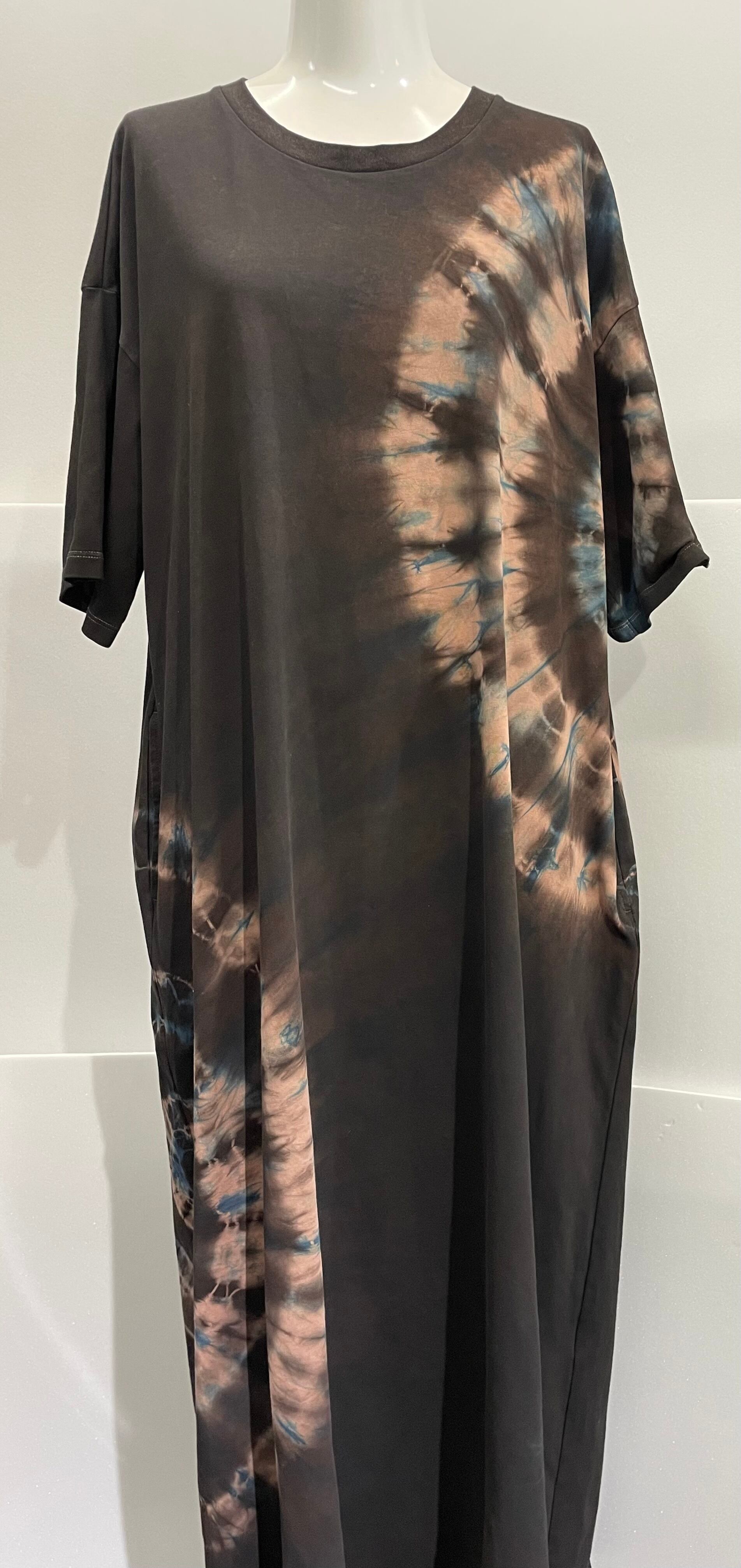泥藍染マキシワンピース/半袖/XL/3L[adw601-84]送料無料