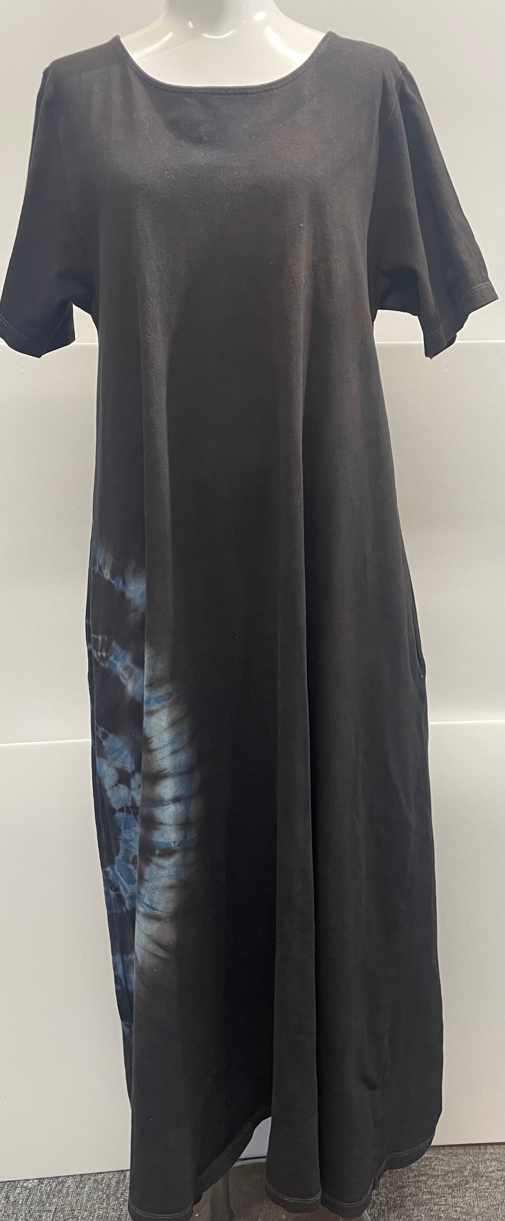 上質な素材と伝統技術が融合した泥藍染マキシワンピ/半袖/M[adw601-85]が新登場!本商品は、オーナーが藍染し、泥染めは職人さんに依頼した特別な一品です。
