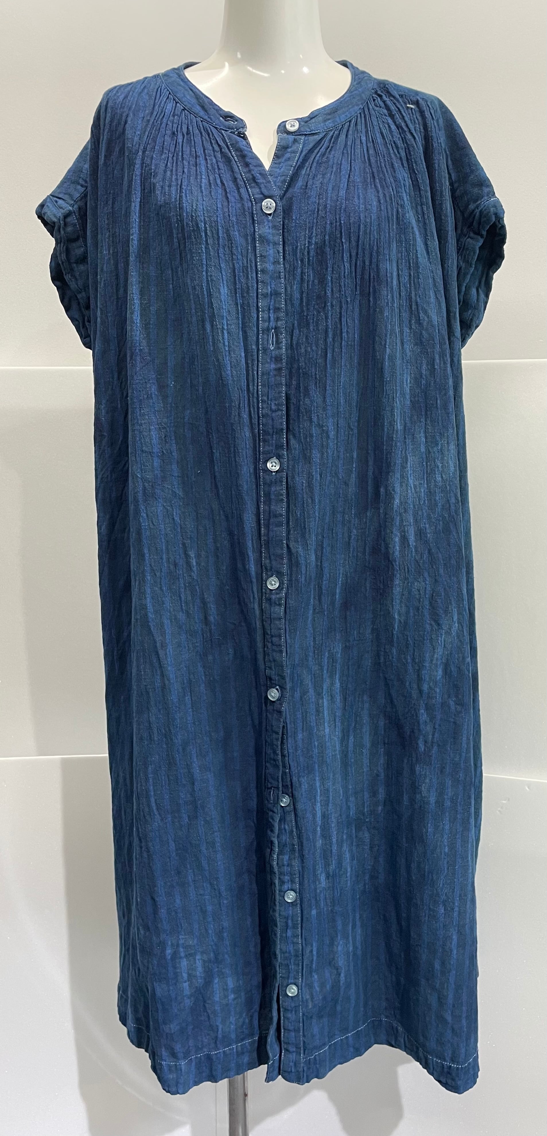 上質な素材と伝統技法が融合した藍染前あきワンピースフレンチ袖/F[aiw601-91]が新登場!本商品は、オーナー自らが丁寧に手染めされた特別な一品です。