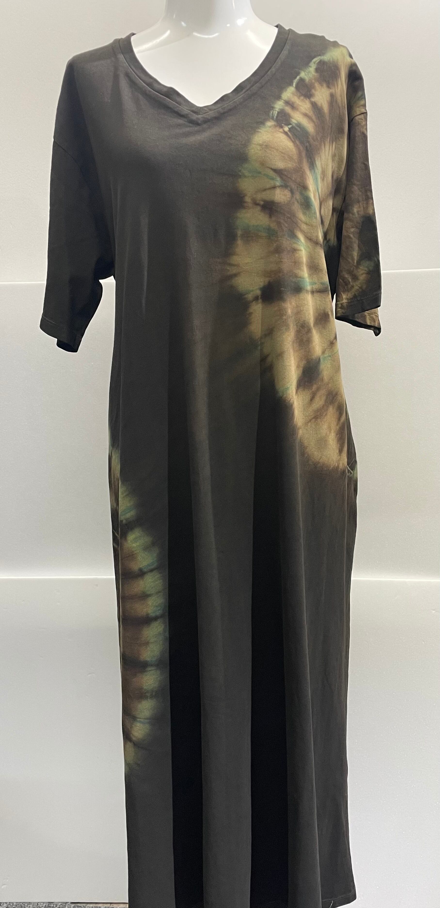 泥藍染マキシワンピース/半袖/L[adw601-93]送料無料