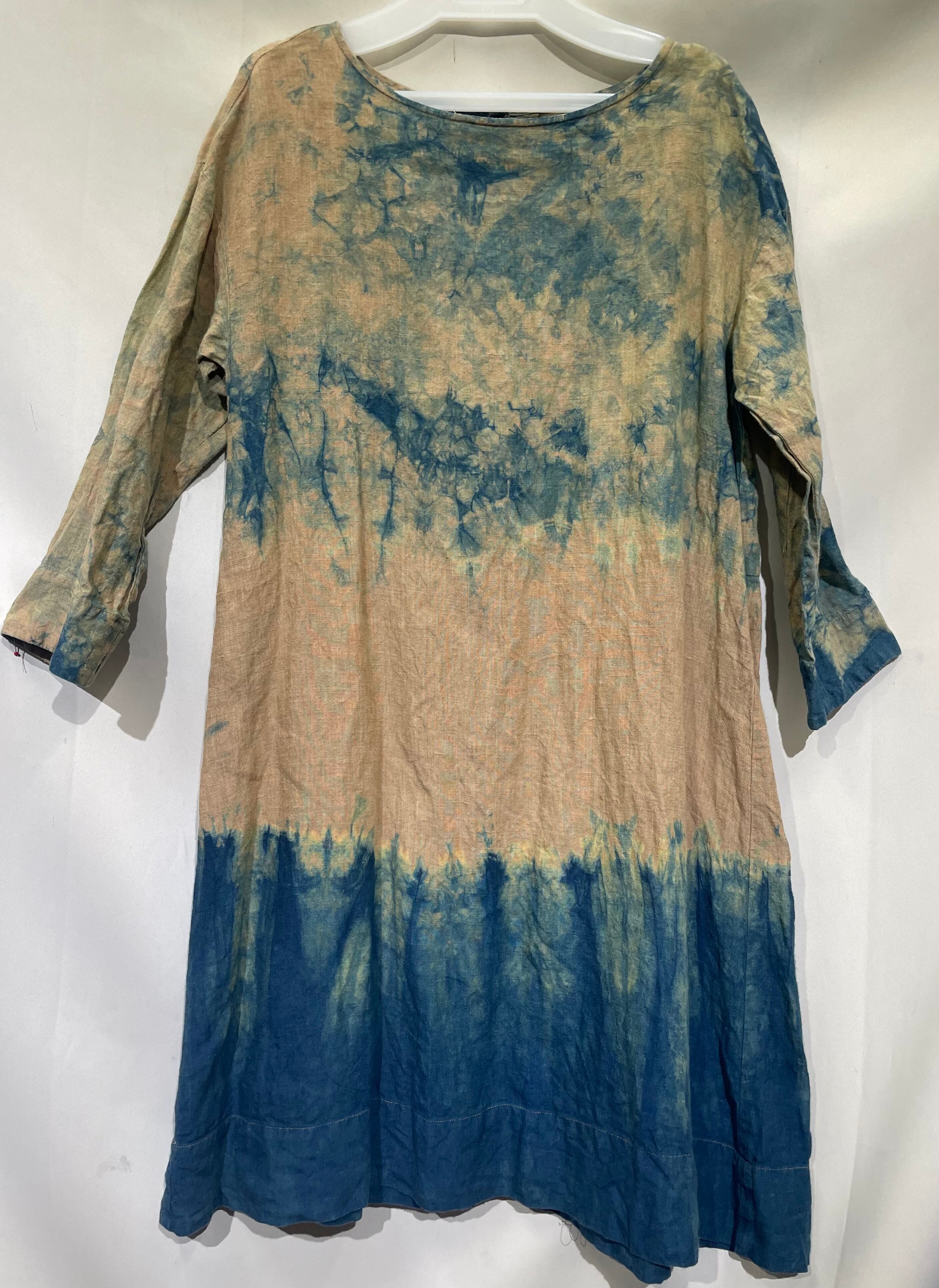 藍染ワンピース/長袖/麻/M[aiw602-118]送料無料