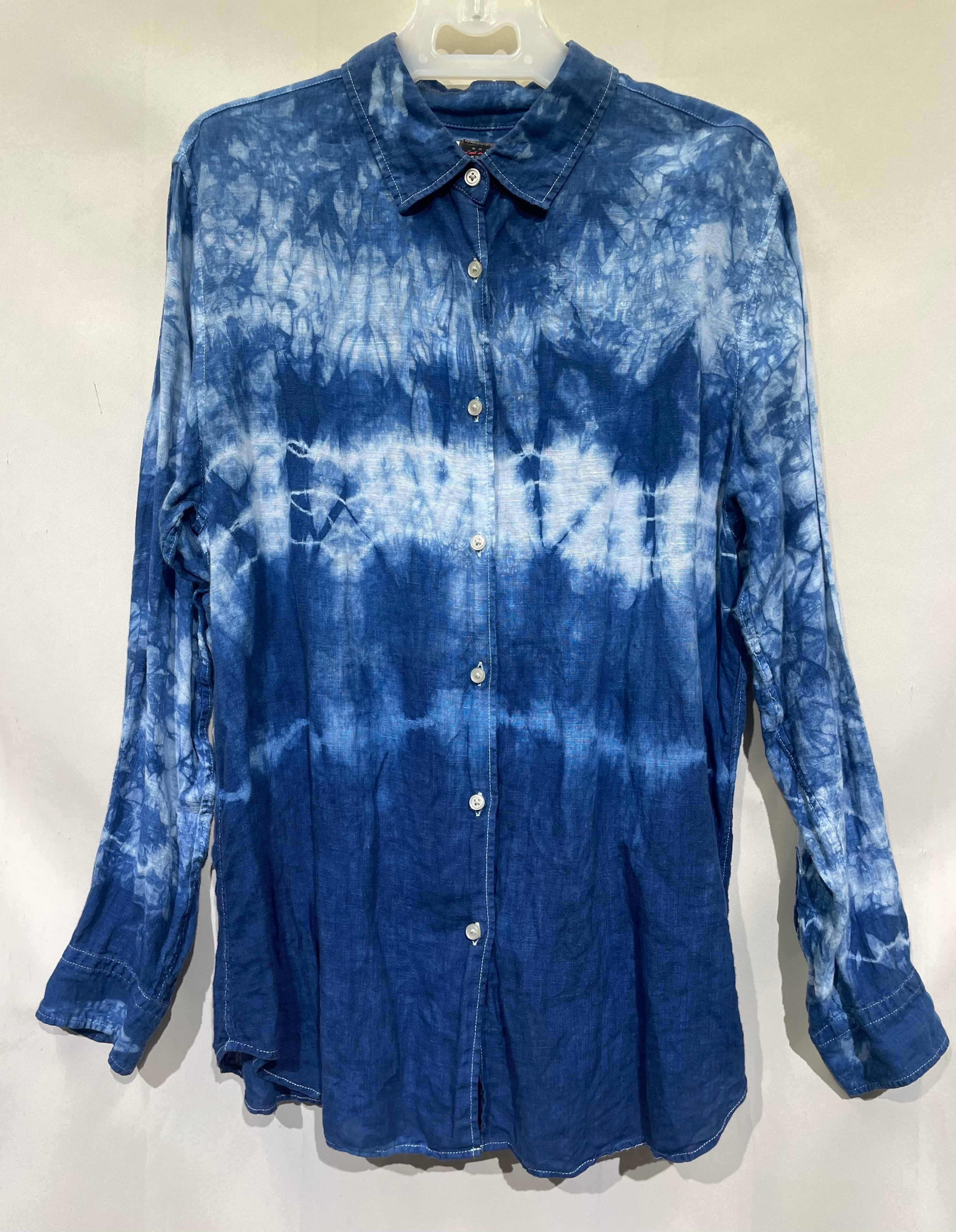 藍染ブラウス/前あき/長袖/麻/L[aib602-121]送料無料