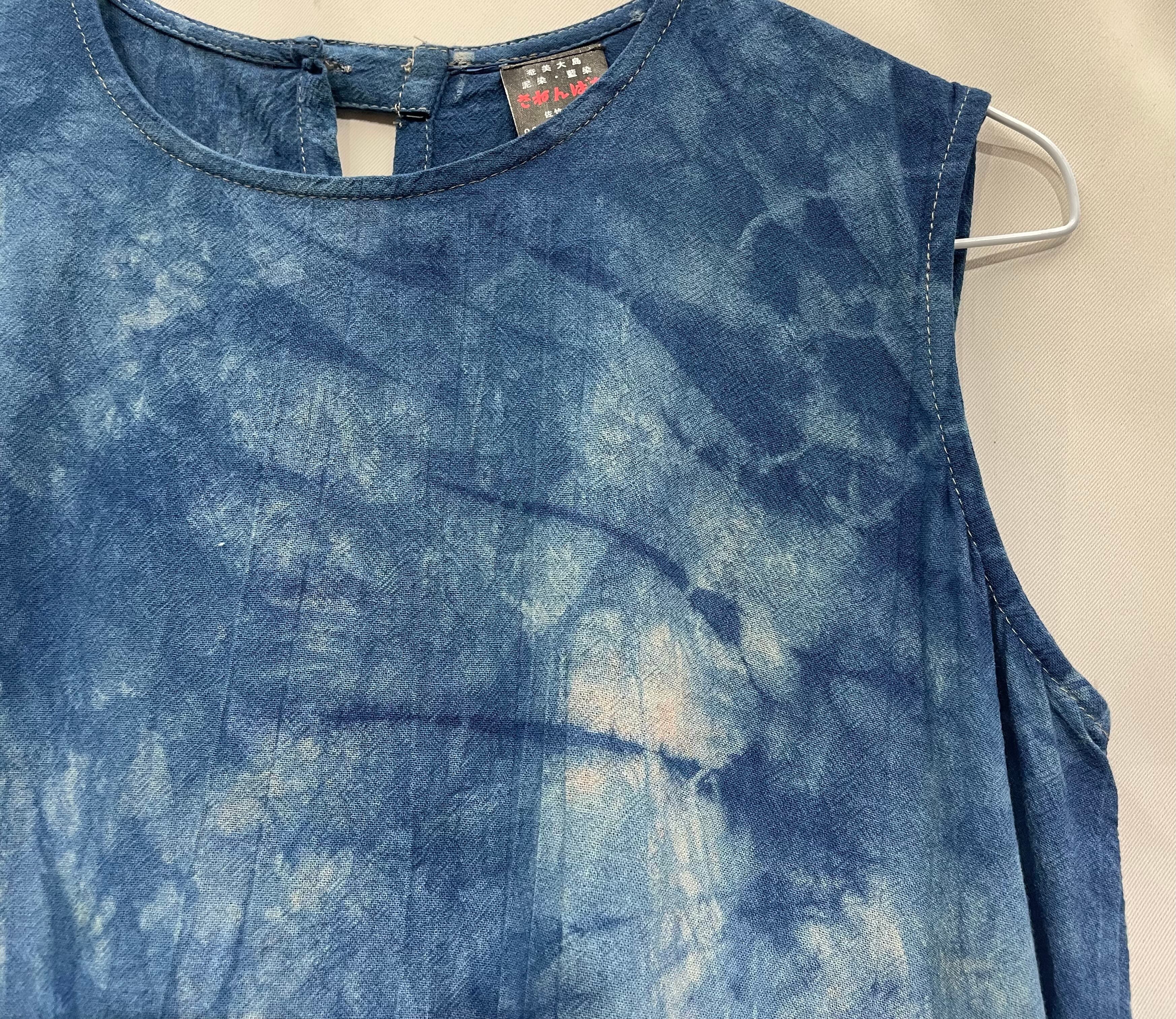 藍染ワンピース/ノースリーブ/綿/L[aiw603-133]送料無料