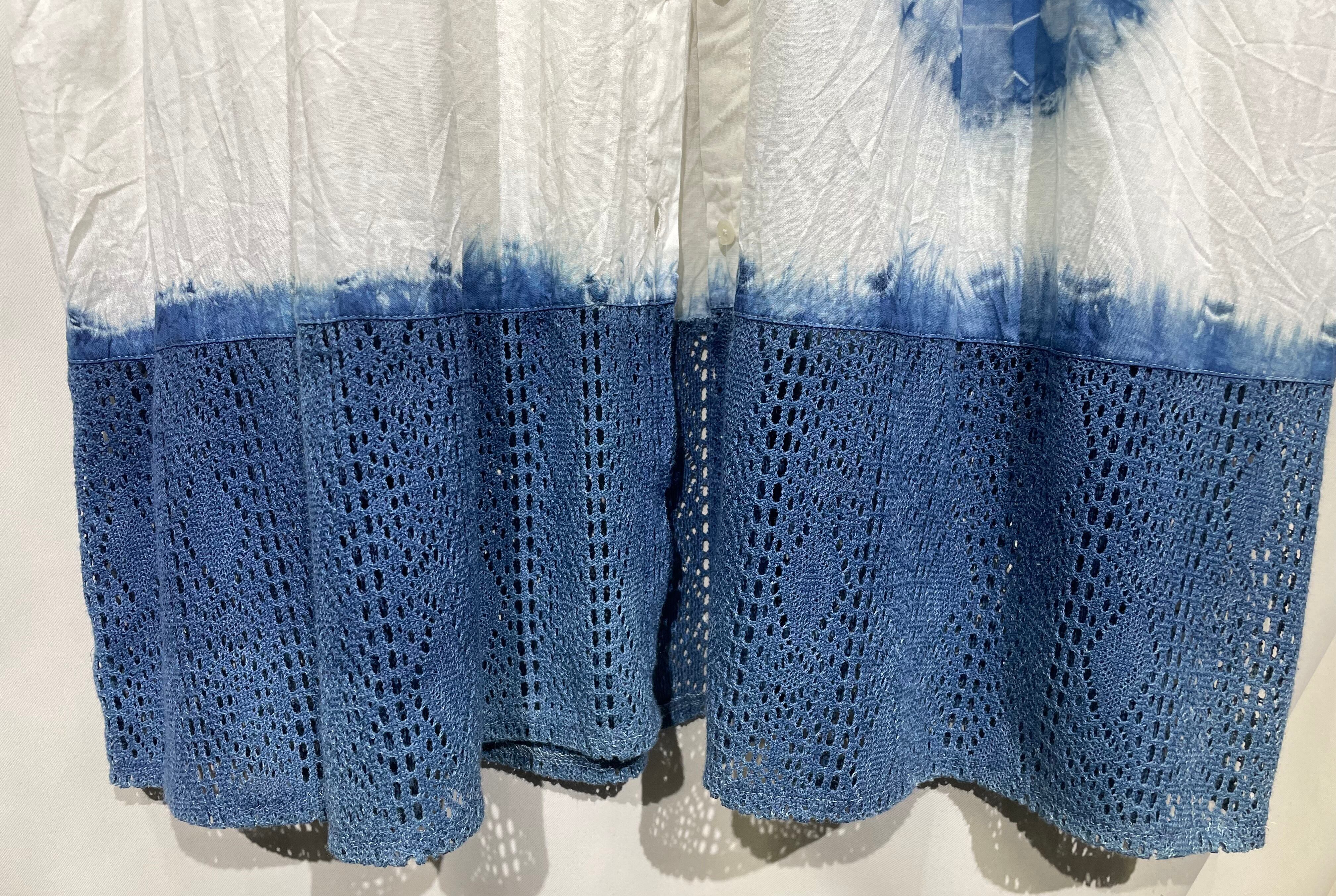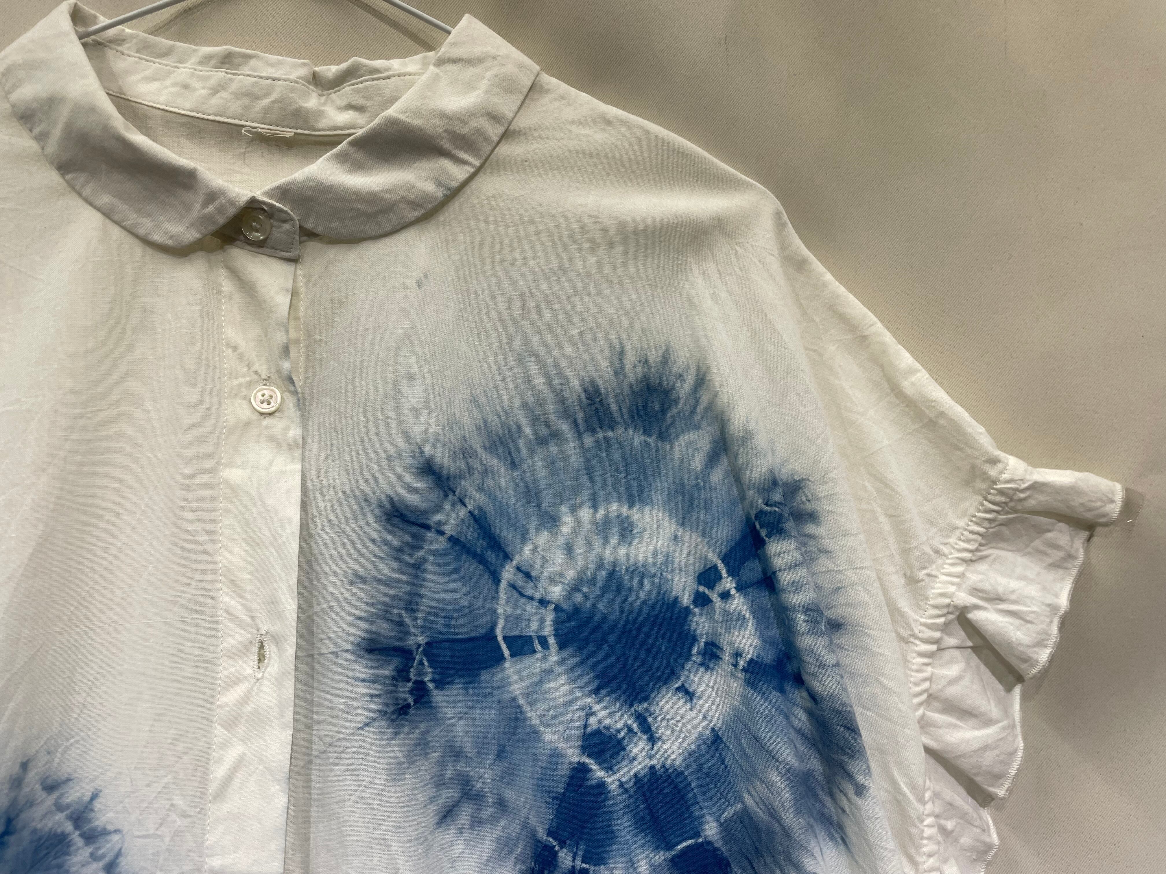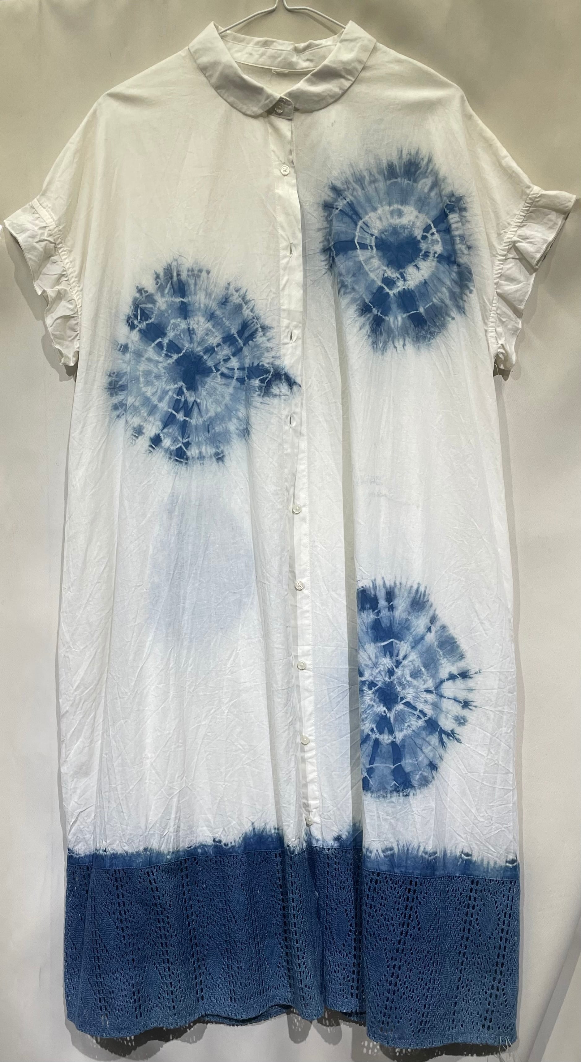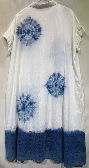藍染ワンピース/フレンチ袖/綿麻混/F[aiw603-139]送料無料