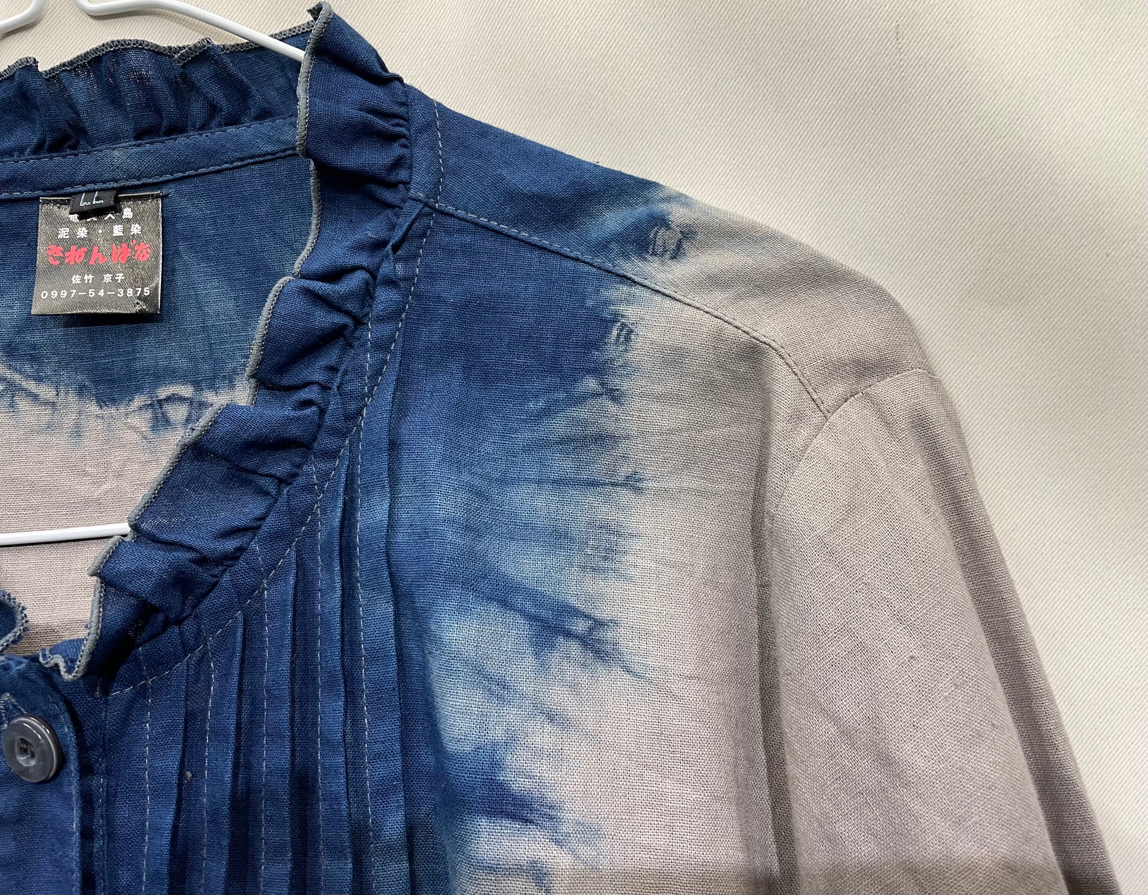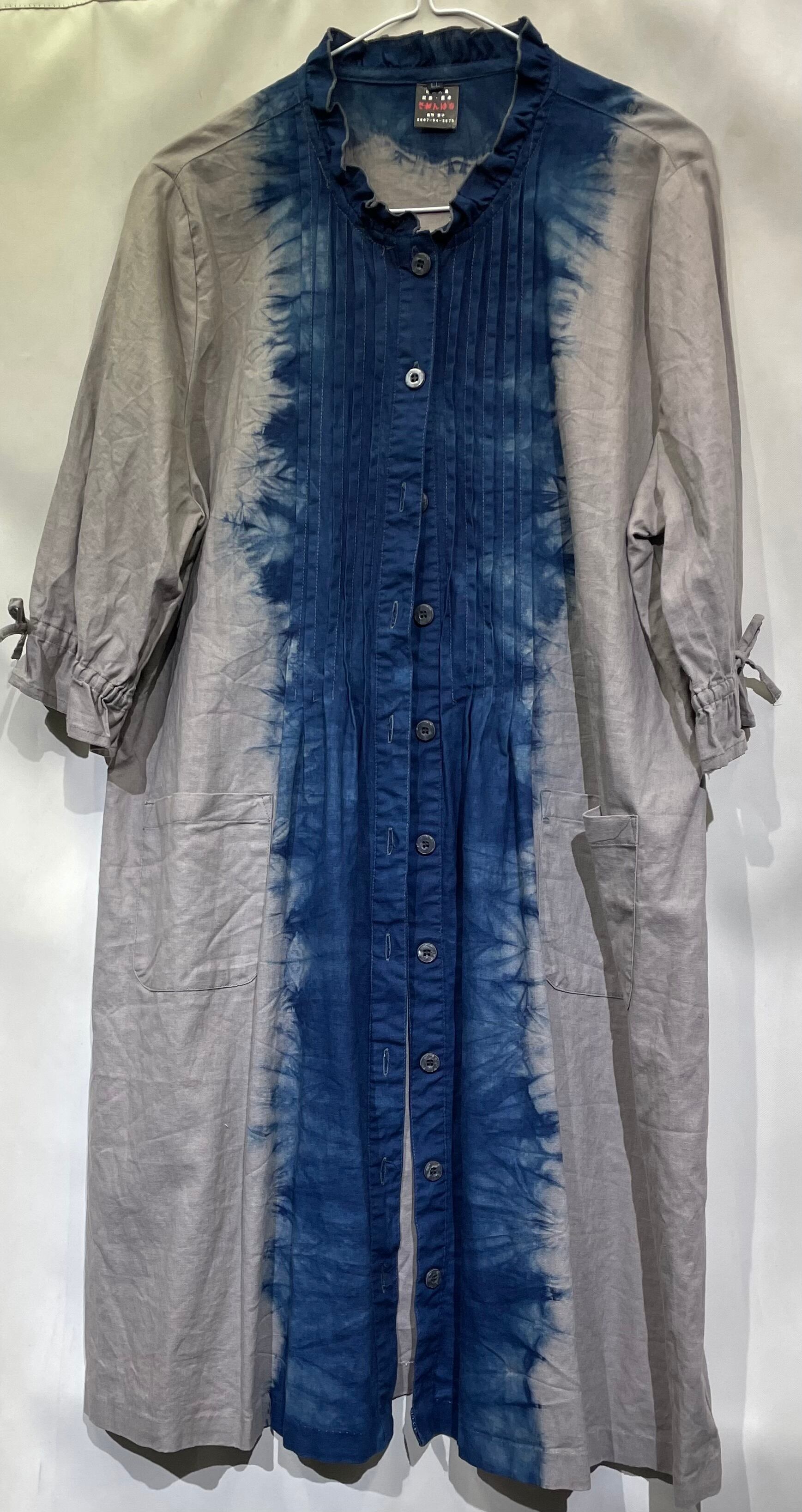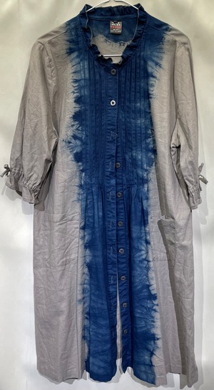 藍染前あきワンピース/5分袖/綿/2L[aiw603-146]送料無料