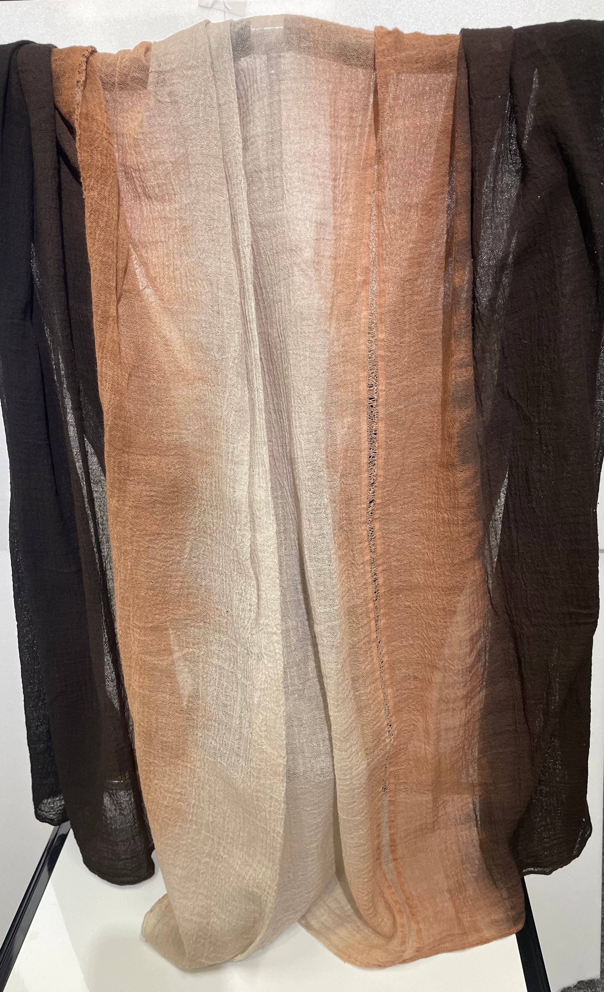 上質な素材と伝統技法が融合した泥染めストール麻100%[dos601-78]が新登場!本商品は、奄美大島紬の製造に欠かせない泥染め技法を存分に活かした、特別な一品です。